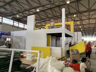 一年兩屆的上海面料輔料展會秋季場又開始了,今年是展會搭建的第一天,昨天下午開始進館堆料。因為這個面料......